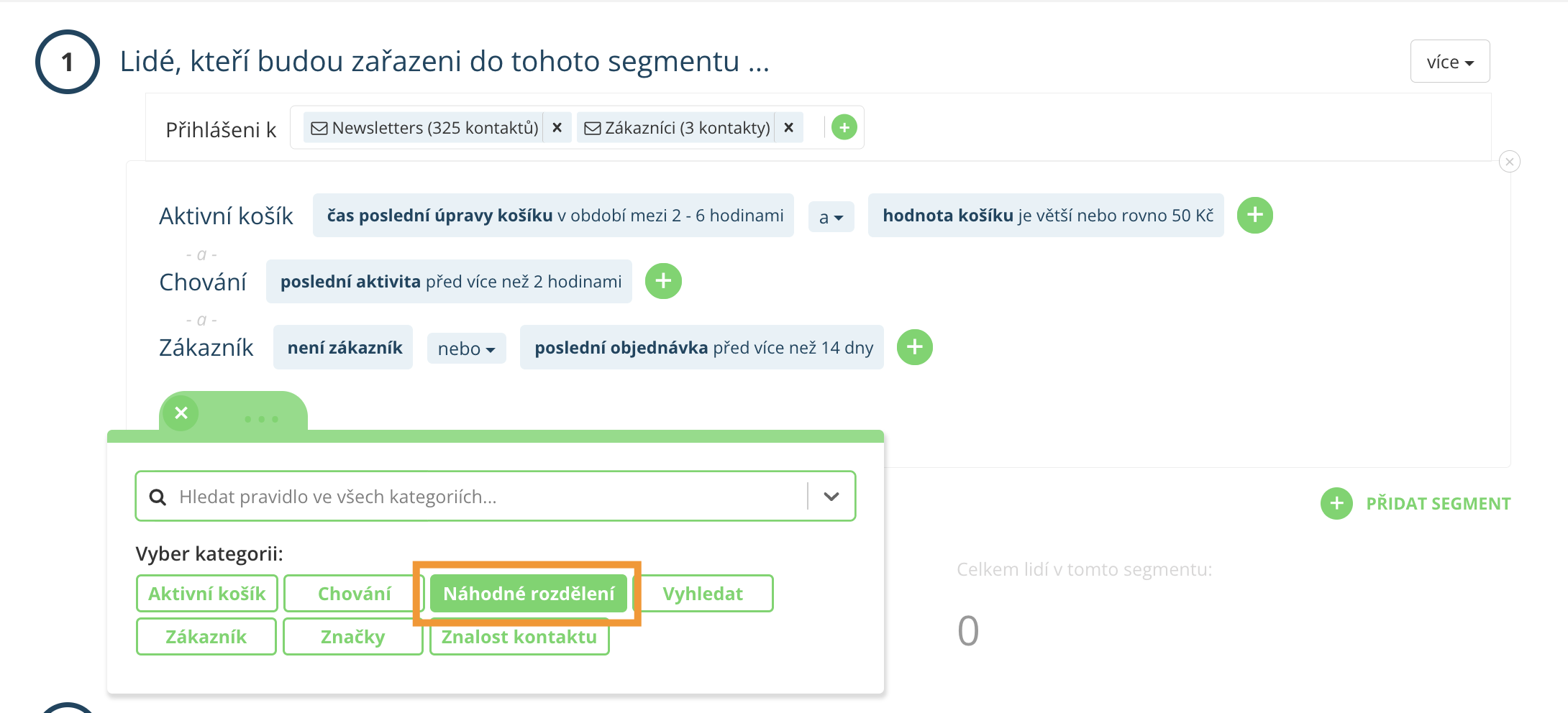 Leadhub následně automaticky rozdělí odběratele spadající do segmentu do zvolených skupin.