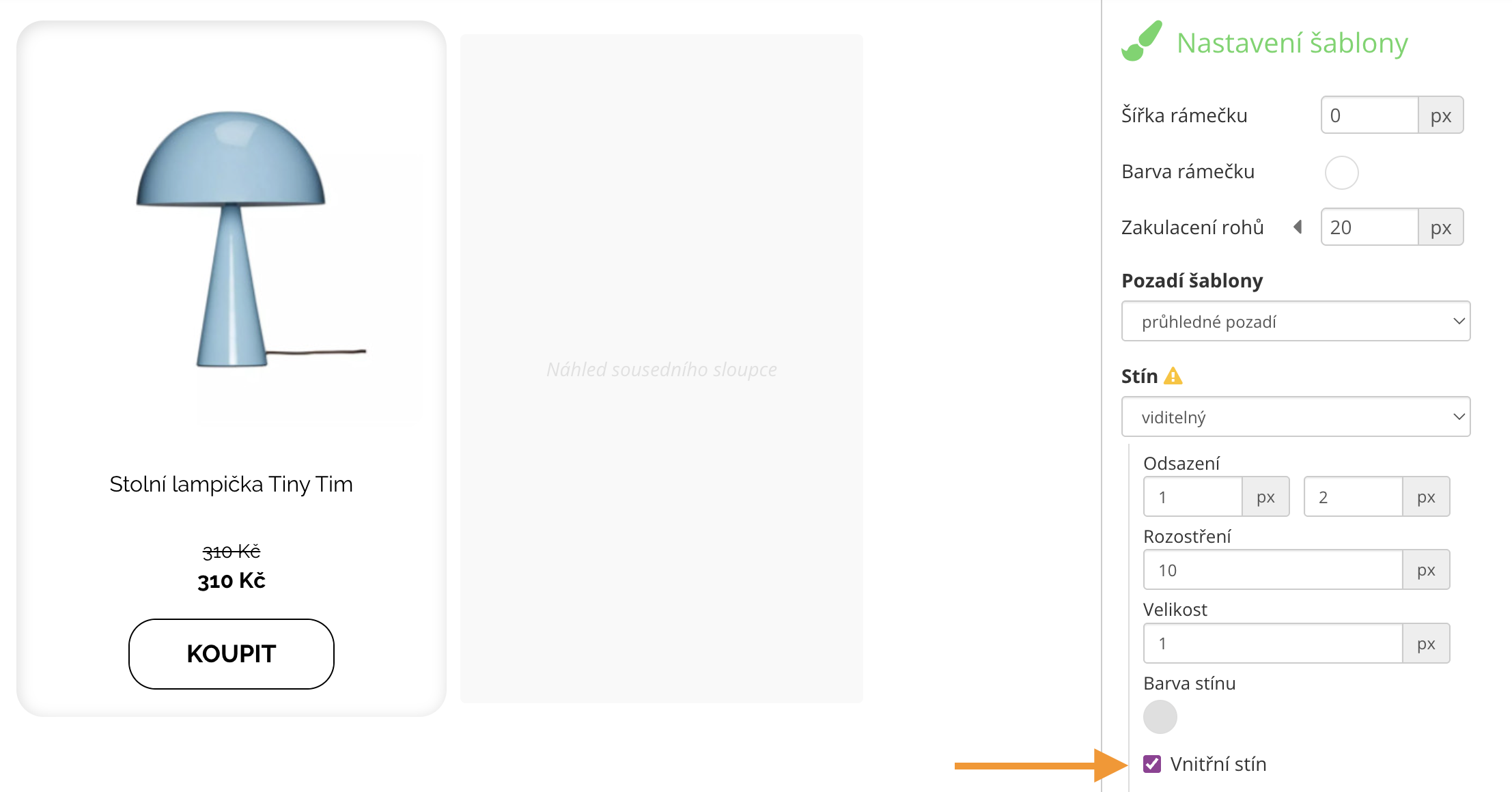 - Otevřete produktovou šablonu, ve které chcete stín použít.