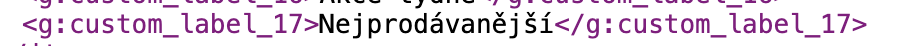 V produktové šabloně chceme propisovat například štítek "Nejprodávanější", který jsme v produktovém feedu označili <g:custom_label_17>Nejprodávanější</g:custom_label_17>