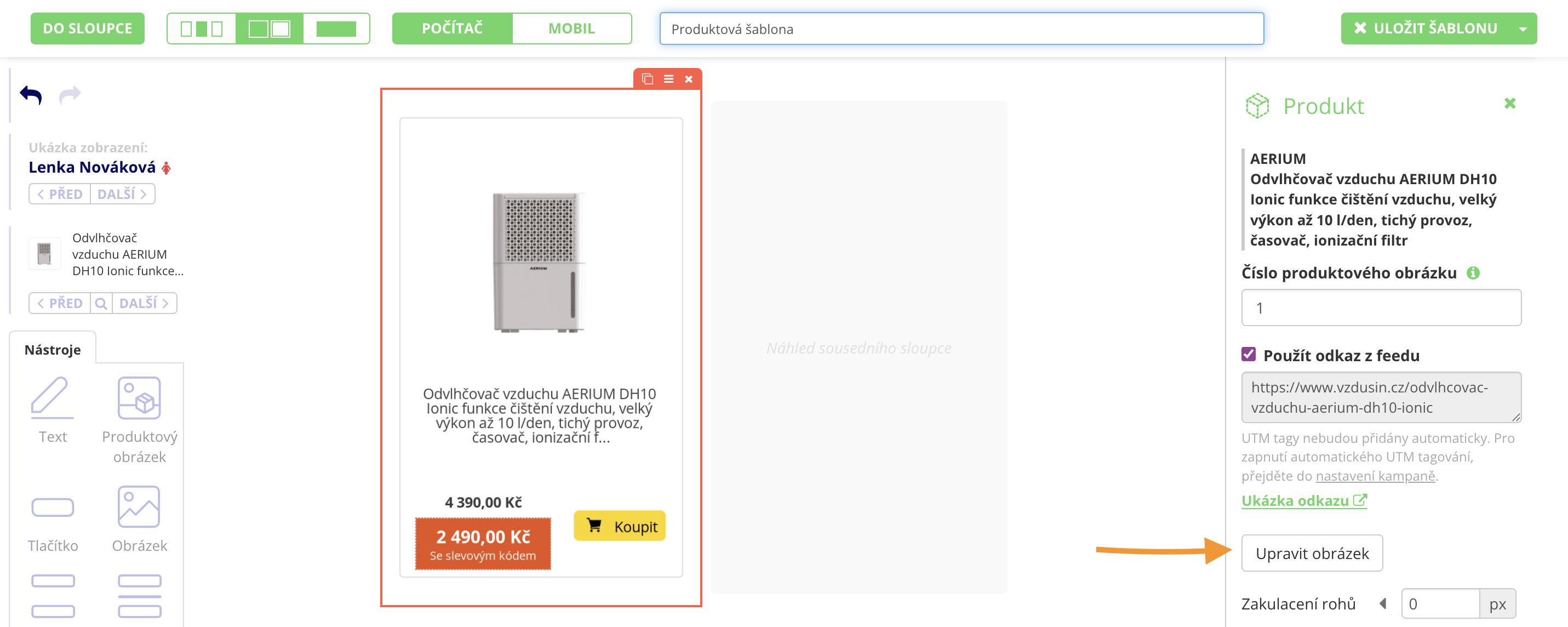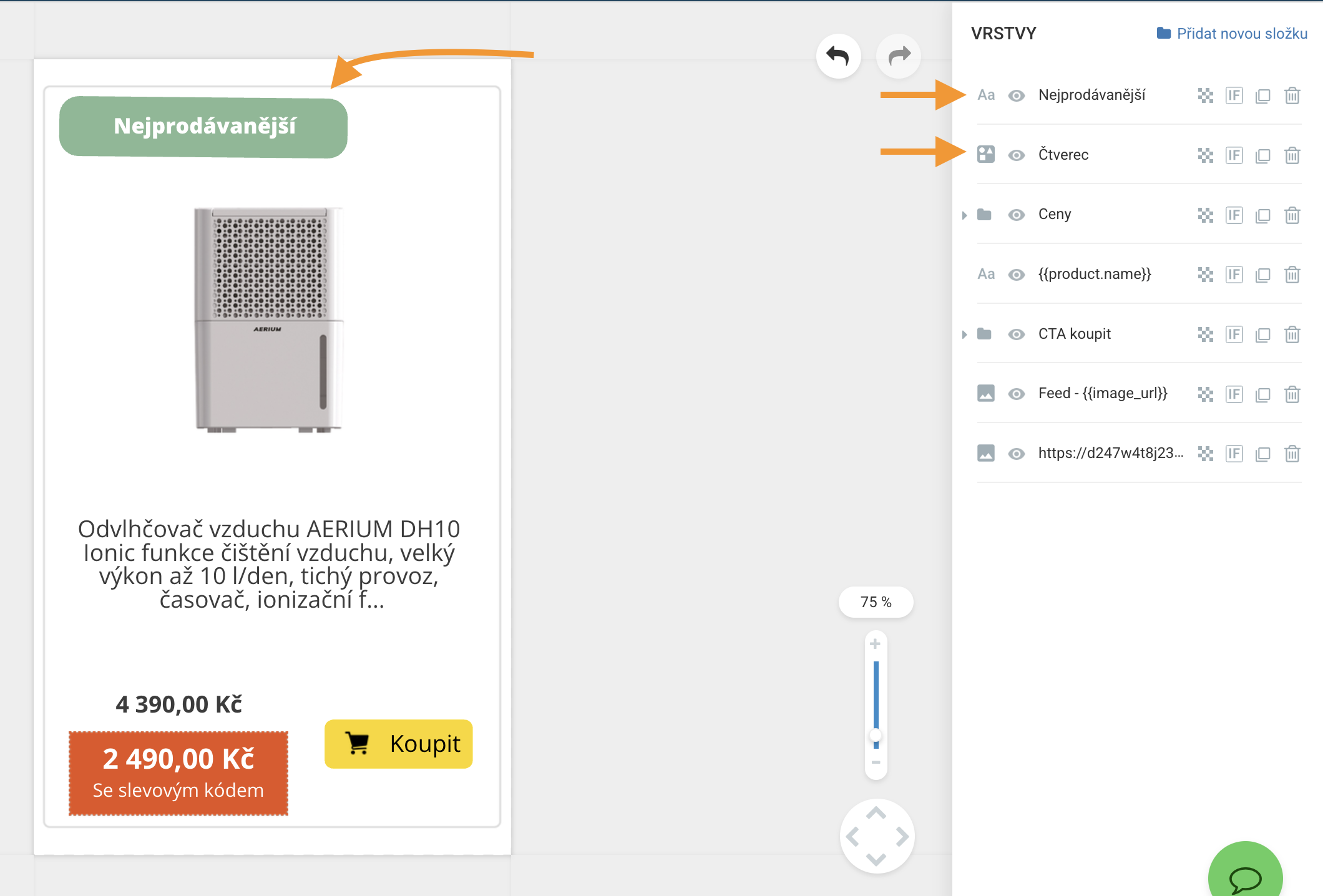 Přejděte do produktové šablony. Vyhledejte produkt, který víte, že má v produktovém feedu štítek "nejprodávanější".