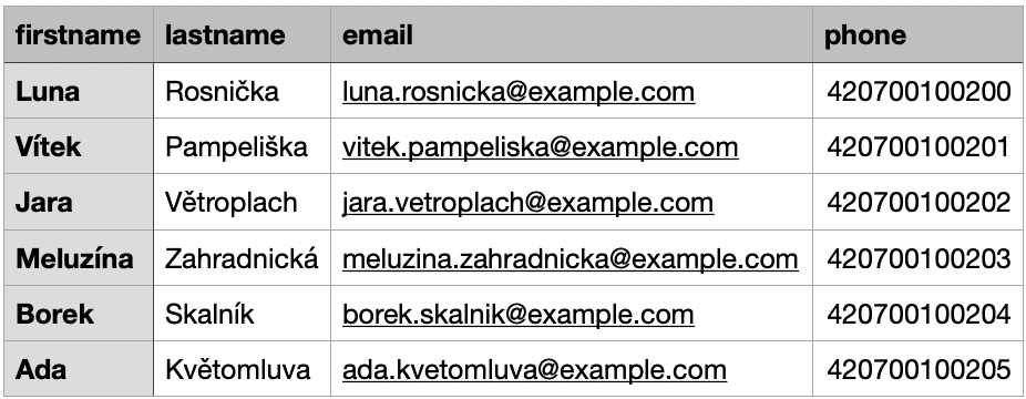 Soubor CSV musí být ve formátu CSV UTF-8 (s oddělovači). Tento formát zajišťuje, že se všechna data bez chyb přenesou do Leadhubu, včetně znaků s diakritikou. Aby byl import úspěšný, je potřeba v dokumentu správně pojmenovat jednotlivé sloupce podle jejich obsahu (např. email, firstname, lastname, city atd.). Díky tomu může systém při importu přesně rozpoznat, jaká data mají být do uložena.