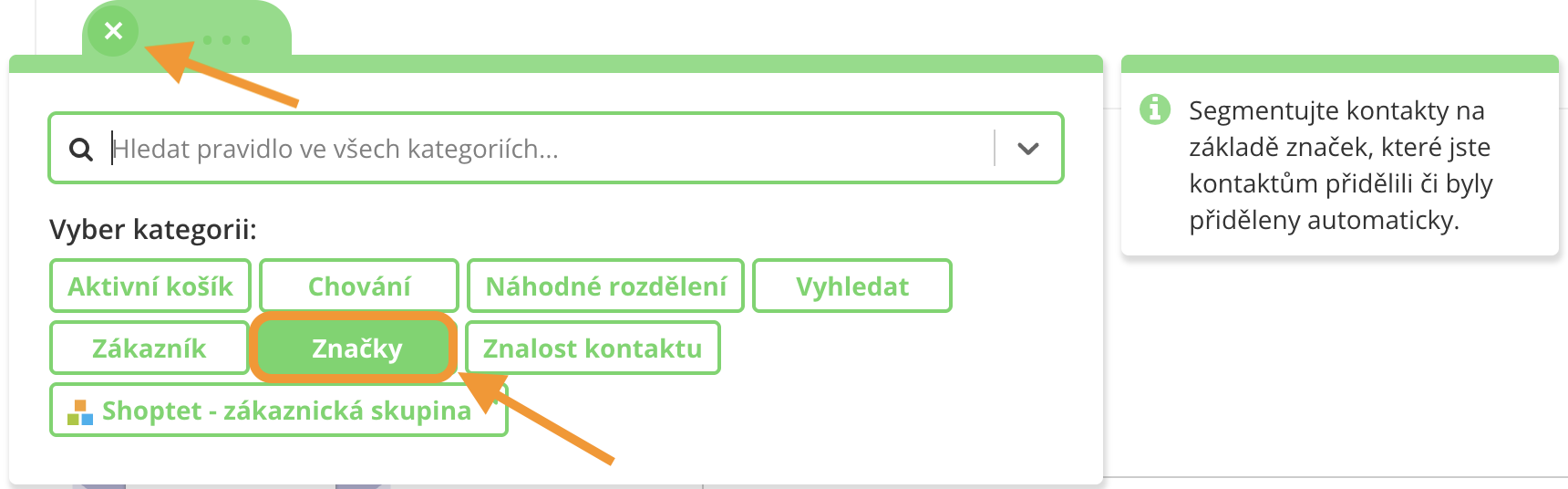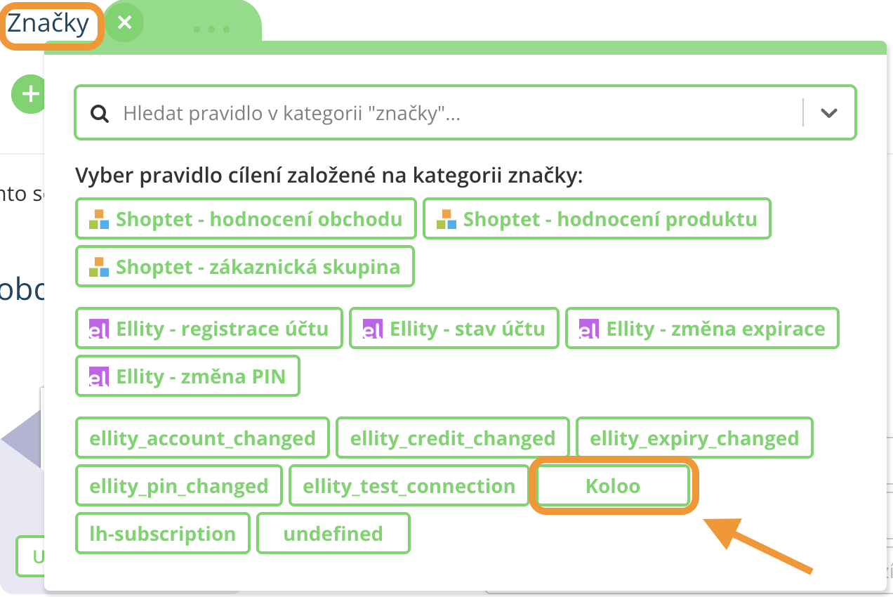 Jakmile dojde k úspěšné integraci, kontakty se budou do Leadhubu přenášet automaticky. Konkrétní e-mailové adresy si můžete vyfiltrovat za pomoci segmentačního pravidla Značky – Koloo.