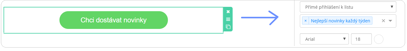 Doteď jste byli zvyklí, že k tlačítku bylo možné připojit URL adresu, na kterou chcete příjemce e-mailu přesměrovat. Nyní ale můžete využívat jeho rozšířených možností a přidávat následující akce, stejně tak jako na text: